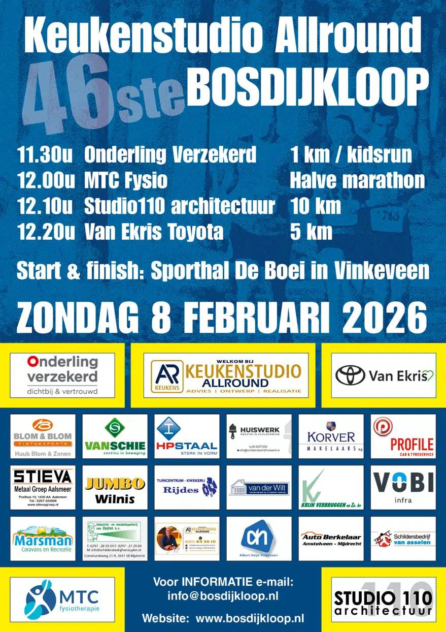 - 21,1 km; De Halve Marathon; Gesponsord door: MTC Fysio (deelname vanaf 16 jaar);